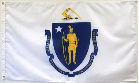 Massachusetts State Flag, Nylon, 3' X 5', 100% Made In Usa, Canvas Header, Heavy-Duty Brass Grommets