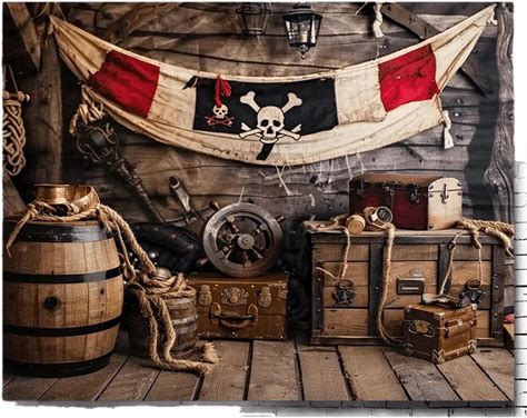 1Pc Pirate Treasure Island Map Background, Polyester - Detailed Cartoon Design, Including Skeletons,