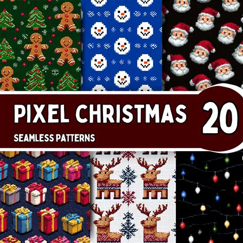 Pixel Christmas Seamless Patterns, Holiday Digital Paper Set (PNG, Digital Download)