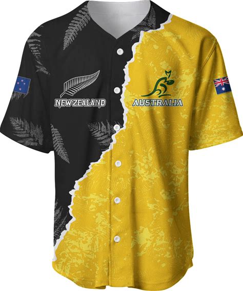 Australia Rugby Mix New Zealands Rugby Baseball Jersey Wallabies Versus Silver Fern Sporty Basic LT7