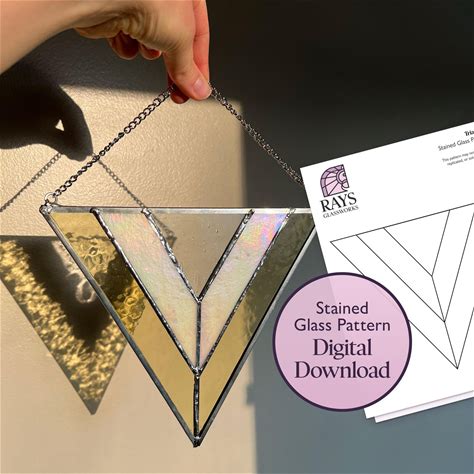 Modern Triangle Stained Glass Pattern - Geometric Blue Panel DIY Suncatcher Template For Window Or Wall Decor, PDF SVG Download (No.04-18TH)