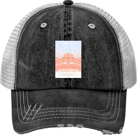 Alien II Trucker Hat - Unisex Vintage Style Cap With Frayed Visor For Festivals And Tailgate Parties - Perfect Alien Fandom Accessory