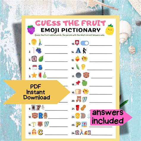 Fruit Emoji Pictionary Game: Printable Kids Classroom Birthday Activity (PDF Download A4/US Letter